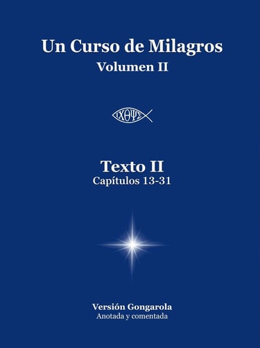 El Texto II constituye el segundo volumen de Un Curso de Milagros (Versión Gongarola), nueva traducción al español anotada del dictado completo atribuido a Jesús y transcrito por Helen Schucman. Este volumen reúne los capítulos 13 al 31 del Texto, donde se establecen los fundamentos conceptuales de la enseñanza.